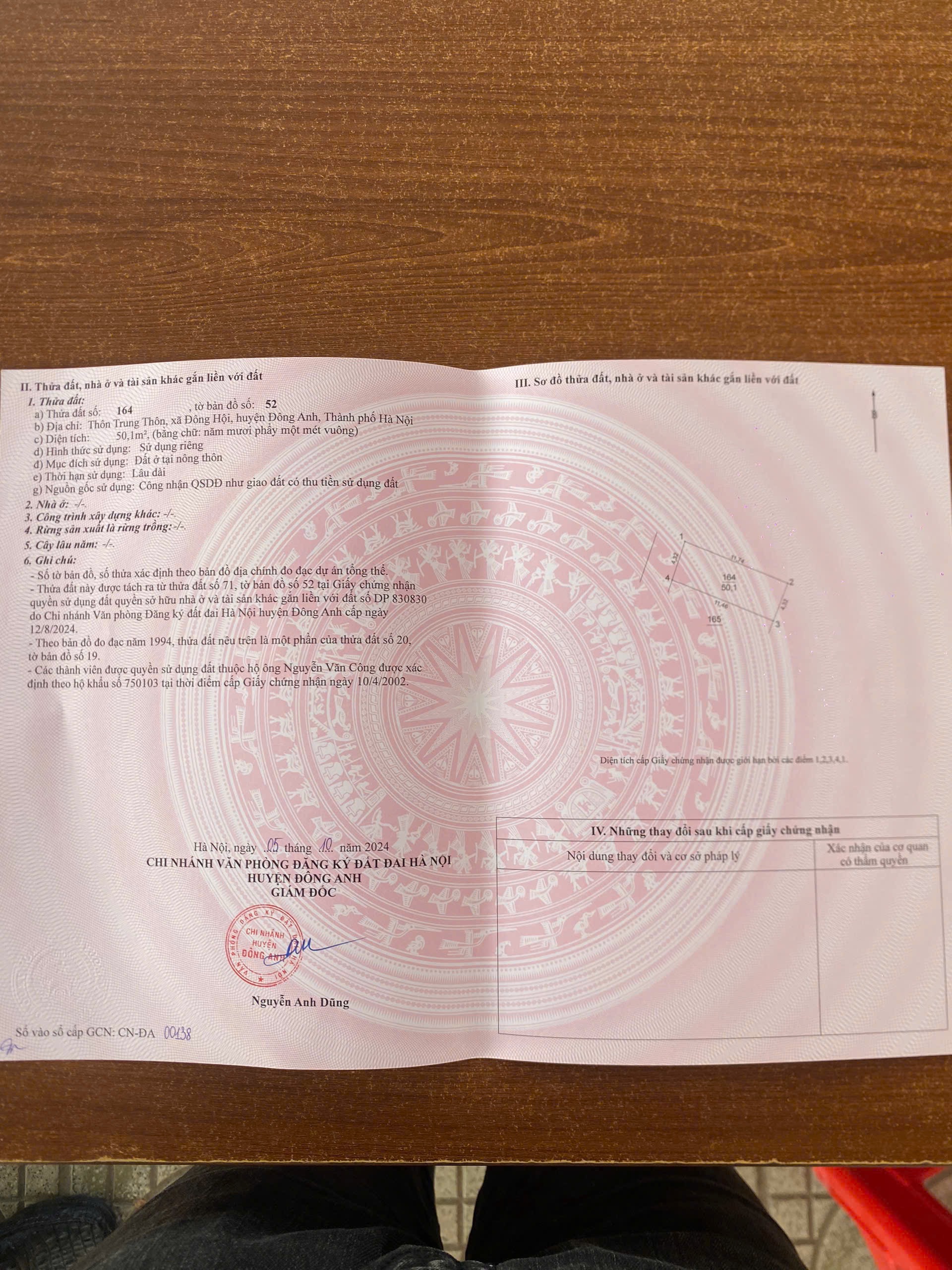 Cần bán gấp lô đất 50m2 (4,3×11,6m) tại thôn Trung Thôn, xã Đông Anh, Hà Nội.
