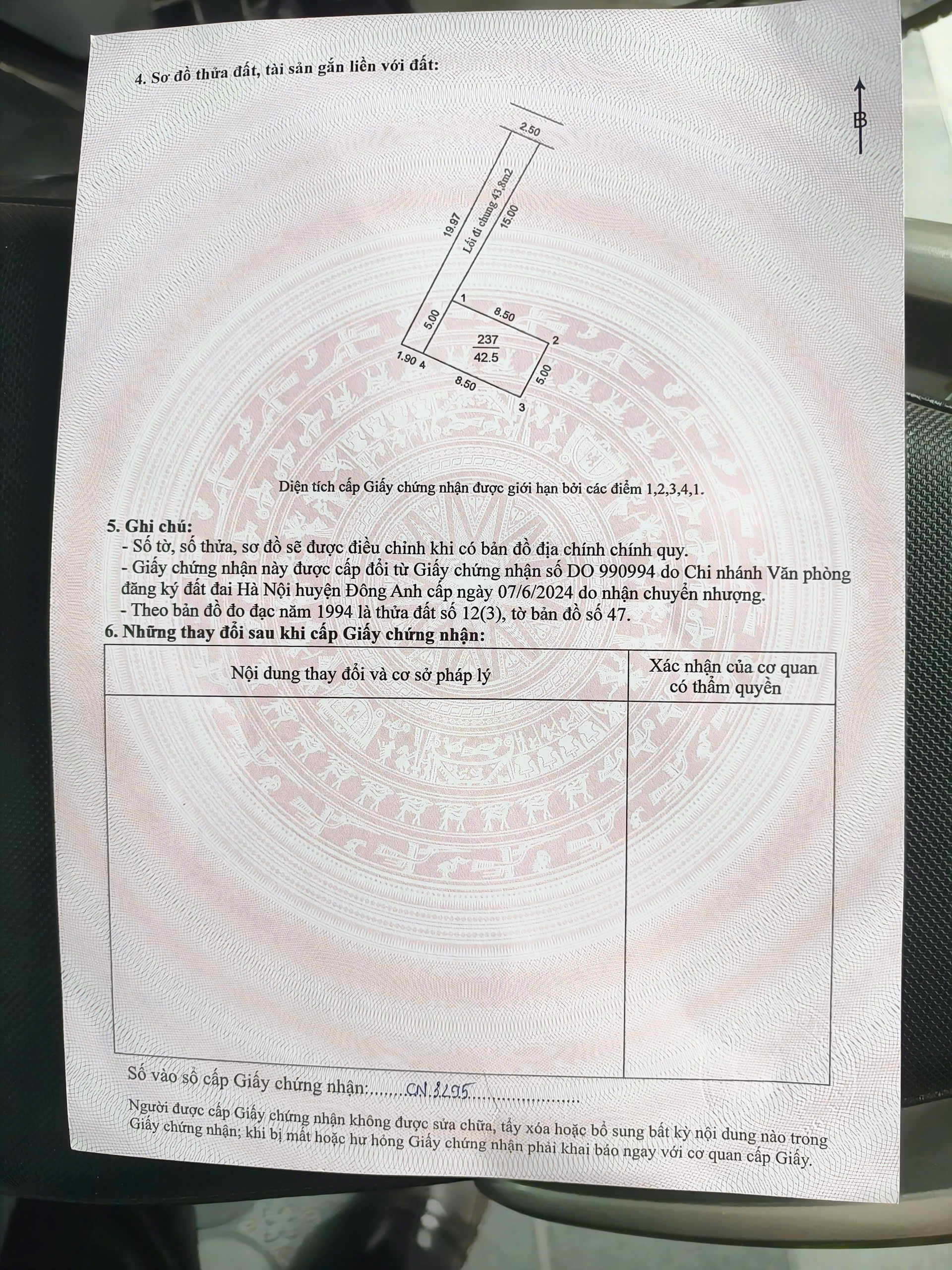 / Xã Đông Hội / Bán đất Lại Đà, Đông Hội 42,5m² – Gần cầu Tứ Liên, giá chỉ 115 triệu/m², vị trí trung tâm