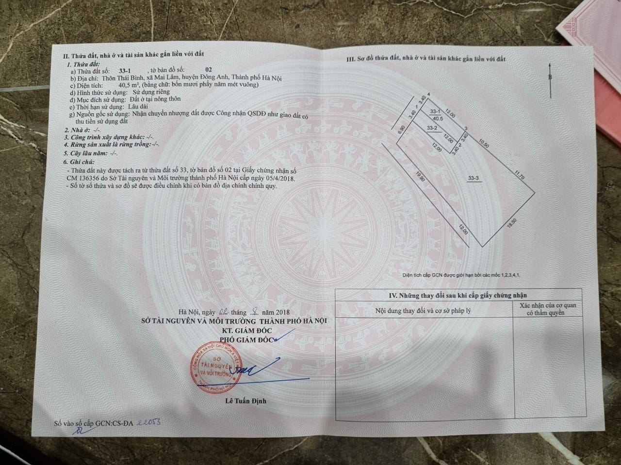 Cần bán 40m2(3,4×11,8) đất Thái Bình, Mai Lâm đường rộng 2,5m hướng Bắc ré Tây cách cầu Đông Trù 1km cách trung tâm hội chợ triển lãm quốc gia và khu đô thị mới Vinhomes Cổ Loa 2,5km Giá 45,5 triệu liên hệ Mr Giảng 0916175299