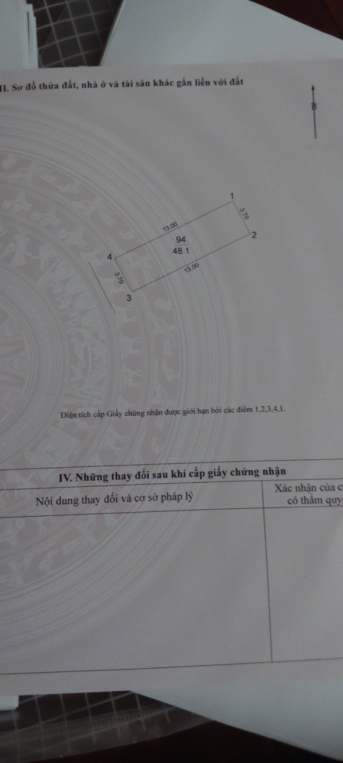 Cần bán 48,1m2(3,7×13) đất Đông Trù Đông Hội đường rộng 2,3m hướng Tây Nam