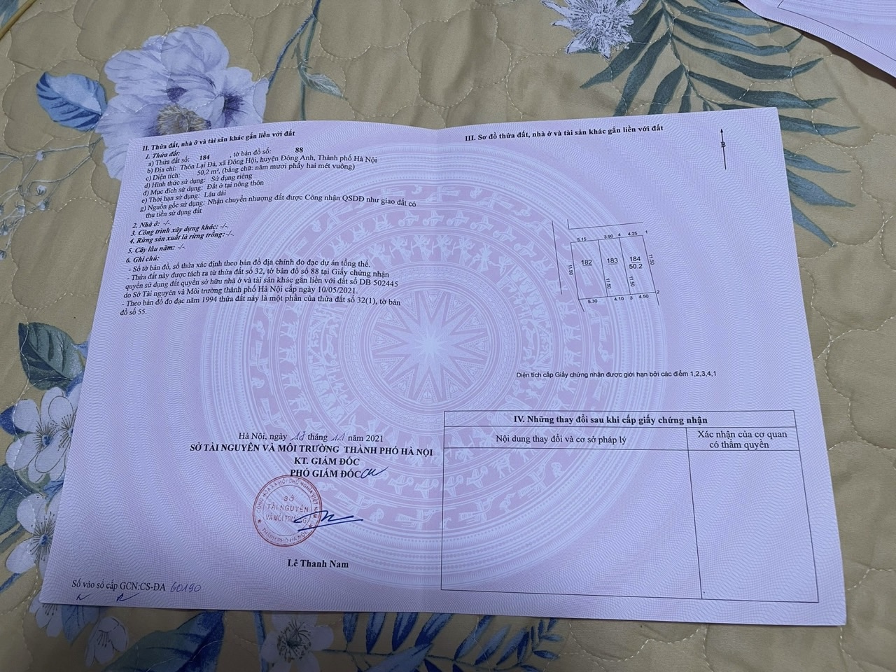 Cần bán 50m2(4,2×11,9) đất Lại Đà, Đông Hội, Đông Anh đường rộng 2,6m hướng Bắc cách cầu Đông Trù 400m cách trung tâm hội chợ triển lãm quốc gia và khu đô thị mới Vinhome Cổ Loa 600m giá 60 triệu