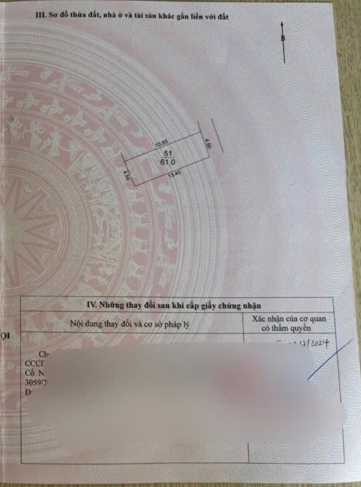 Cần bán 61m2(4,5×13,55) đất Vạn Lộc Xuân Canh Đông Anh