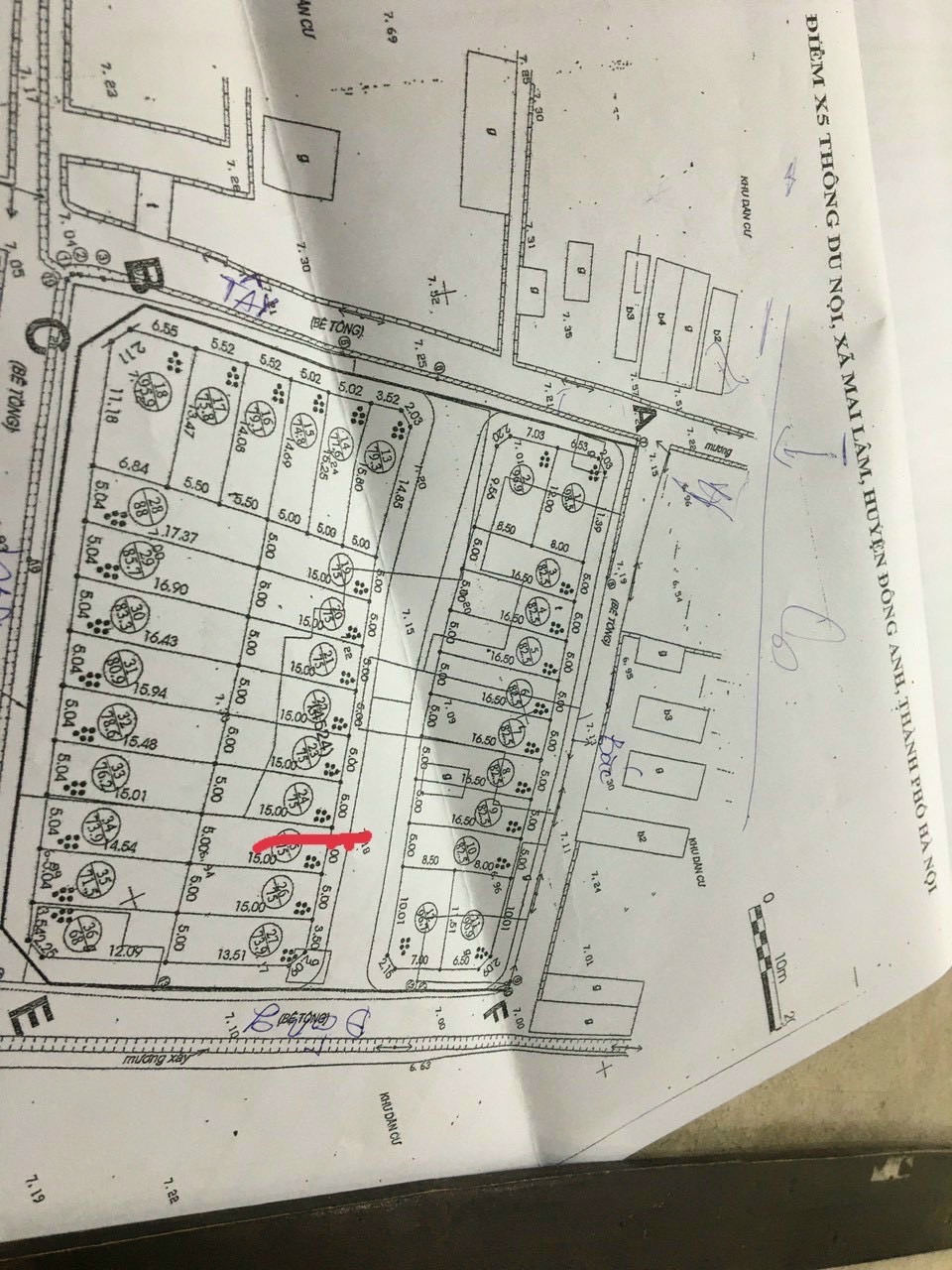 Cần bán 75m2(5×15) đất đấu giá X5 Du Nội Mai Lâm Đông Anh đường rộng 5m vỉa hè 3m hướng Tây Bắc cách cầu Đông Trù 2km cách trung tâm hội chợ triển lãm quốc gia và khu đô thị mới Vinhome Cổ Loa 2,5km giá 75 triệu