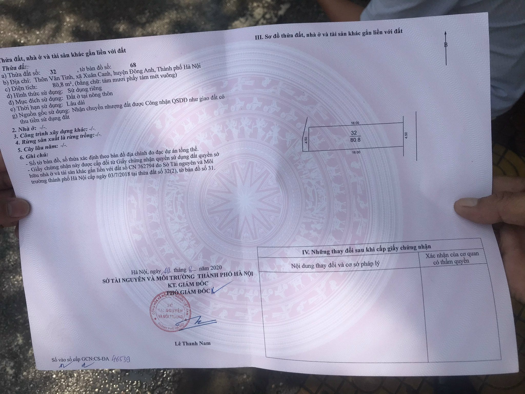 / Xã Xuân Canh / Cần bán 80m2(4,5×17,5) đất mặt đường Văn Tinh, Xuân Canh, Đông Anh đường rộng 6,5m