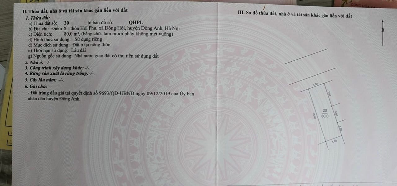 Cần bán 80m2(5×16) đất đấu giá X1 Hội Phụ, Đông Hội, Đông Anh đường rộng 5m