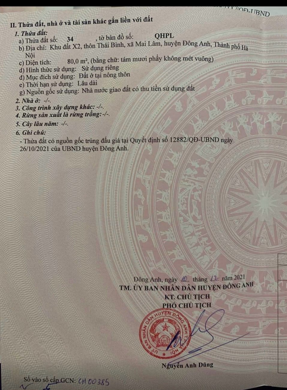 Cần bán 80m2(5×16) đất đấu giá X2 Thái Bình, Mai Lâm, Đông Anh đường rộng 6,5m, via hè 3,5m. Hướng Đông Nam, cách cầu Đông Trù 600m, cách trung tâm hội chợ triển lãm quốc gia và khu đô thị mới Vinhomes Cổ Loa 800m. Giá 79,5 triệu liên hệ Mr Giảng 0916175299