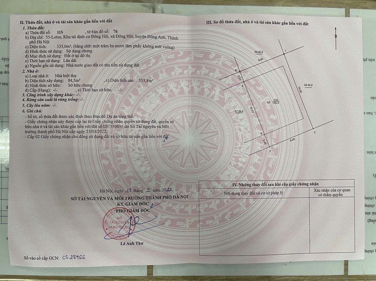 Cần bán biệt thự song lập Eurowindow Đông Trù, Đông Hội, Đông Anh, Hà Nội 135m2(9×15) đường 10m vỉa hè 5m hướng Đông Nam. Cách cầu Đông Trù 400m, cách trung tâm hội chợ triển lãm quốc gia và khu đô thị mới Vinhomes Cổ Loa 600m. Giá 22 tỷ liên hệ Mr Giảng 0916175299